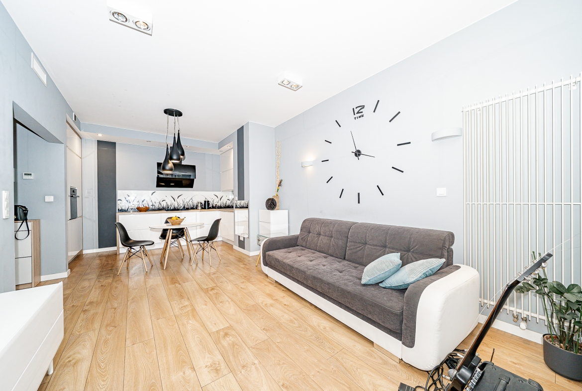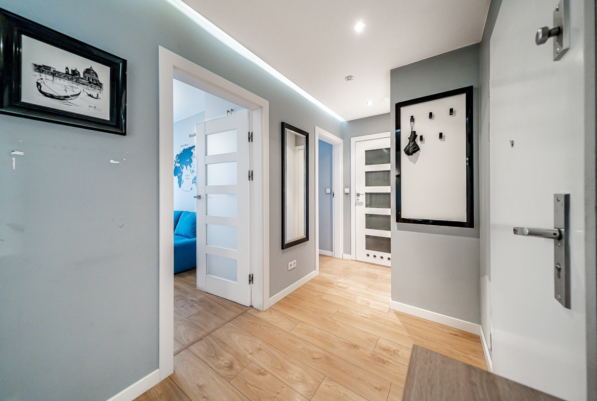 Jest Klimatyzacja. Mieszkanie jest przestronne, ze świetnym układem pokoi i aranżacją wnętrza. Przestronna, otwarta kuchnia, salon z pokaźnych rozmiarów loggią, dużo szaf w pokojach, pozwalają na wygodę i duży komfort użytkowania. Dodatkowo jest komórka lokatorska.