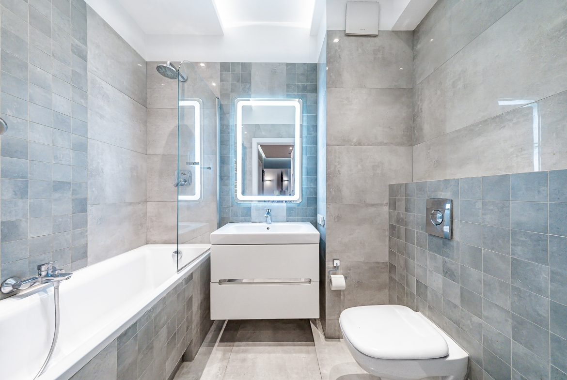 łazienka z wanną i szybą prysznicową, WC i bidet