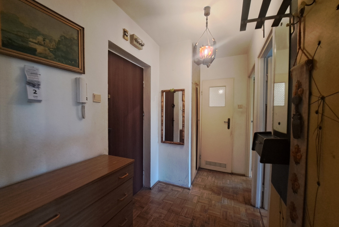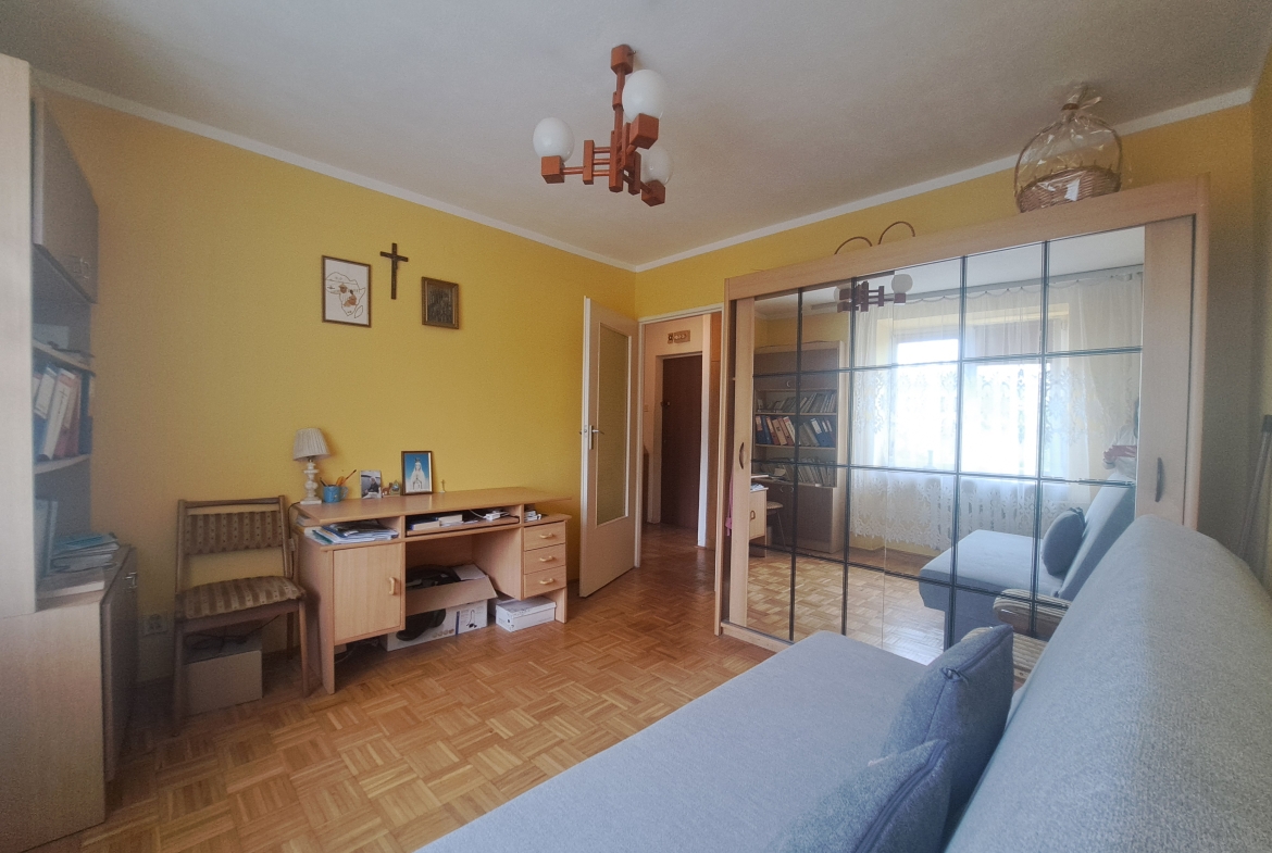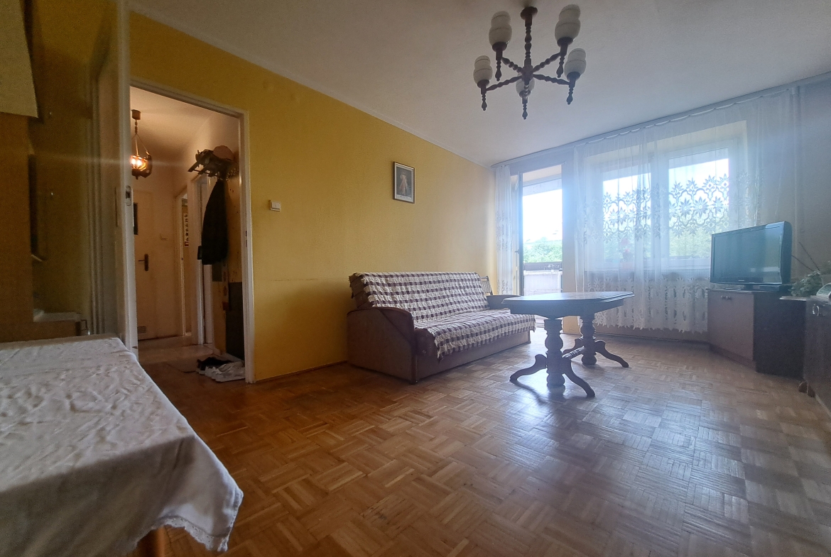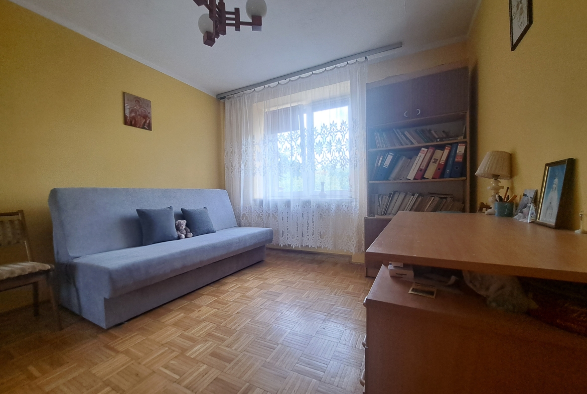 Okna PCV. Na podłodze pokoi parkiet. Łazienka i kuchnia w glazurze, terakocie-stary typ. Stan wymaga odświeżenia/remontu.