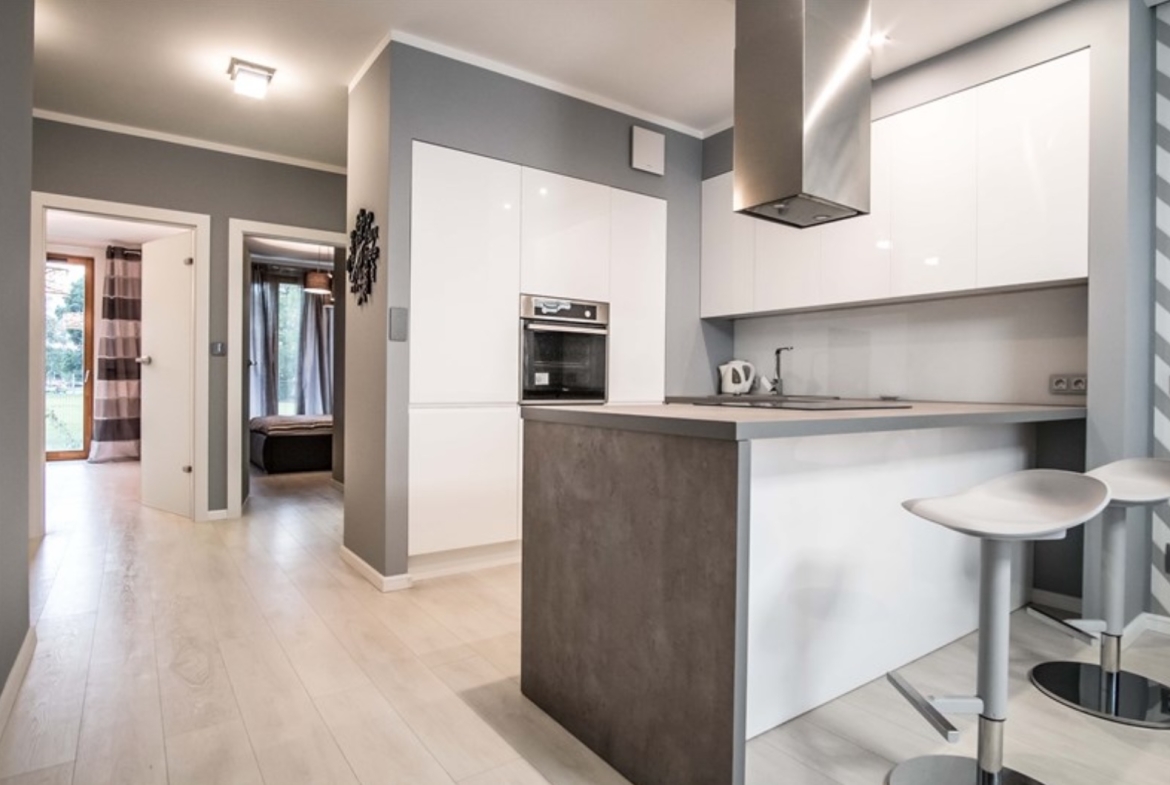 Wykończony z dbałością o każdy detal apartament o pow. 61 m2 usytuowany na bezpiecznym parterze, na strzeżonym osiedlu, z całodobową ochroną.