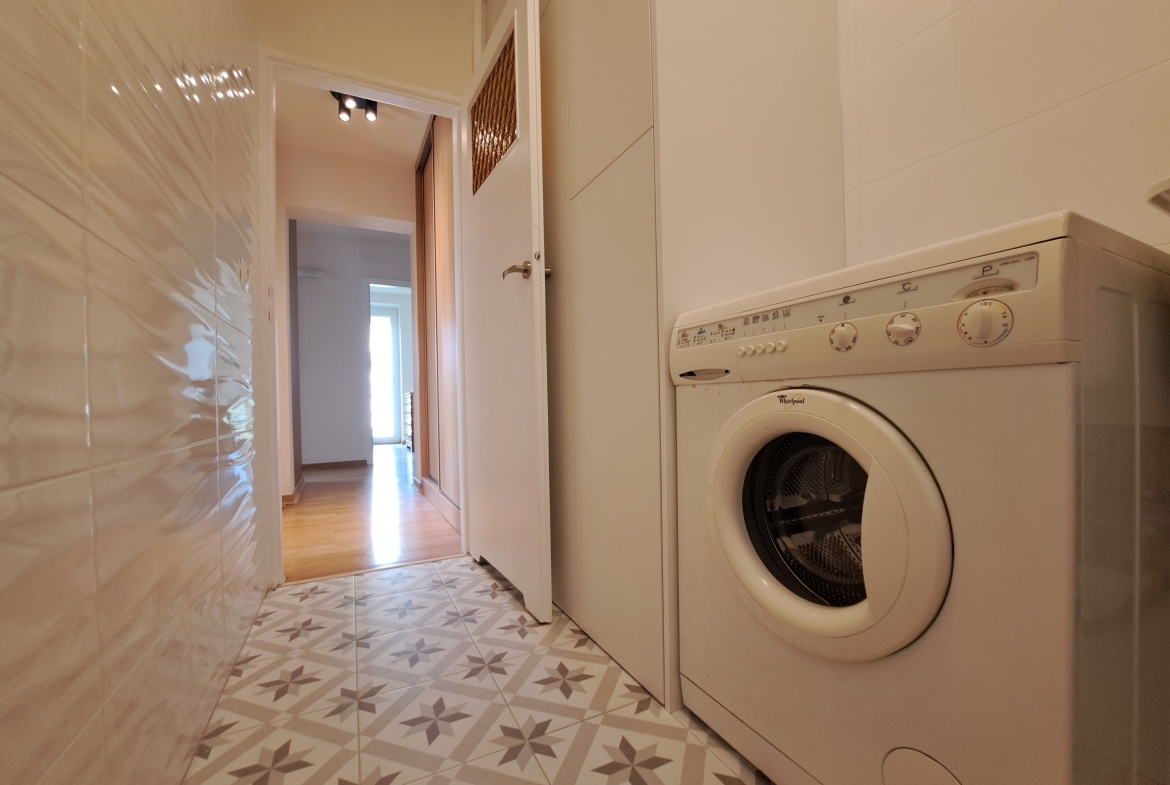 Dodatkowe pomieszczenie gospodarcze z zabudową szaf, pralką.