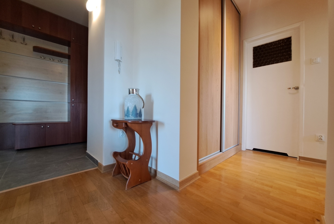 Zabudowy szaf w hallu. Odświeżone podłogi, wymieniona elektryka.